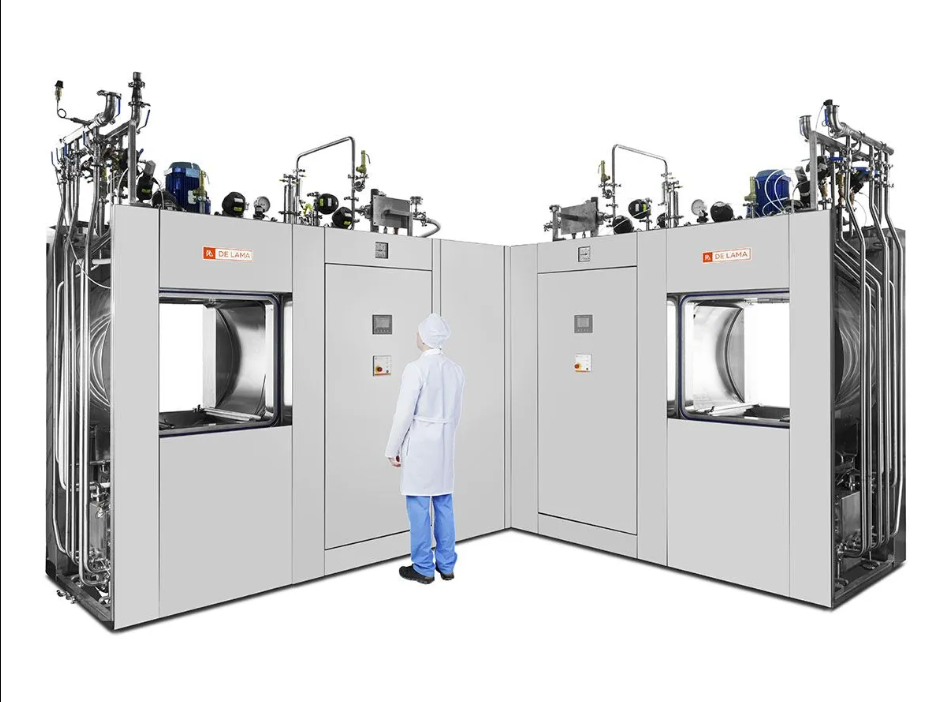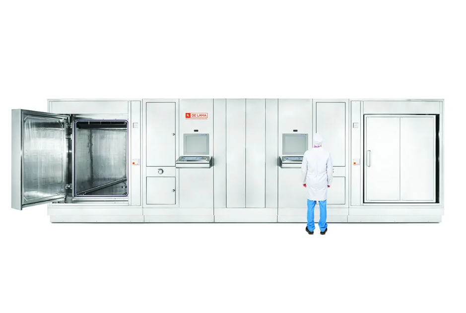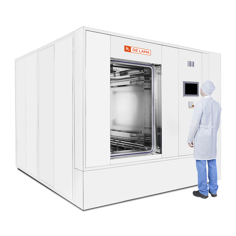 De Lama sterilizers, in DLOV-W configuration combine the performances of a saturated steam sterilization autoclave, DLOV model , with those of a high-efficiency industrial washing machine useful for components cleaning , machine parts , loading accessories ( eg . trays for freeze drying in bulk) which require the removal of dust residual, particulates and contaminants.