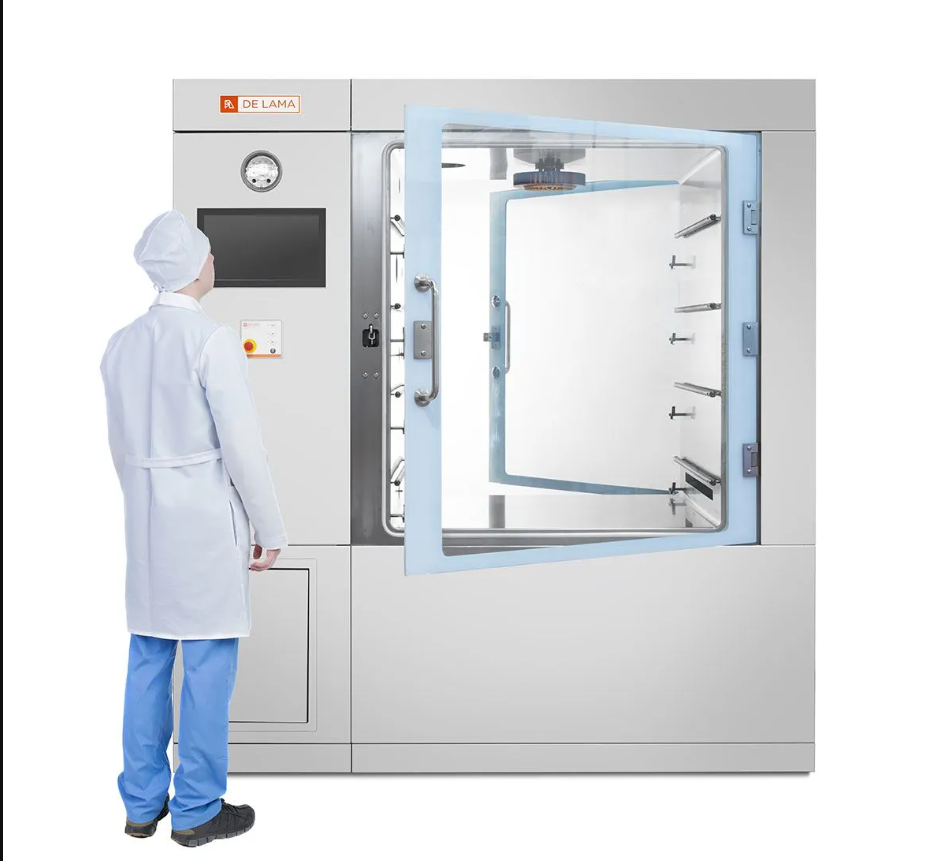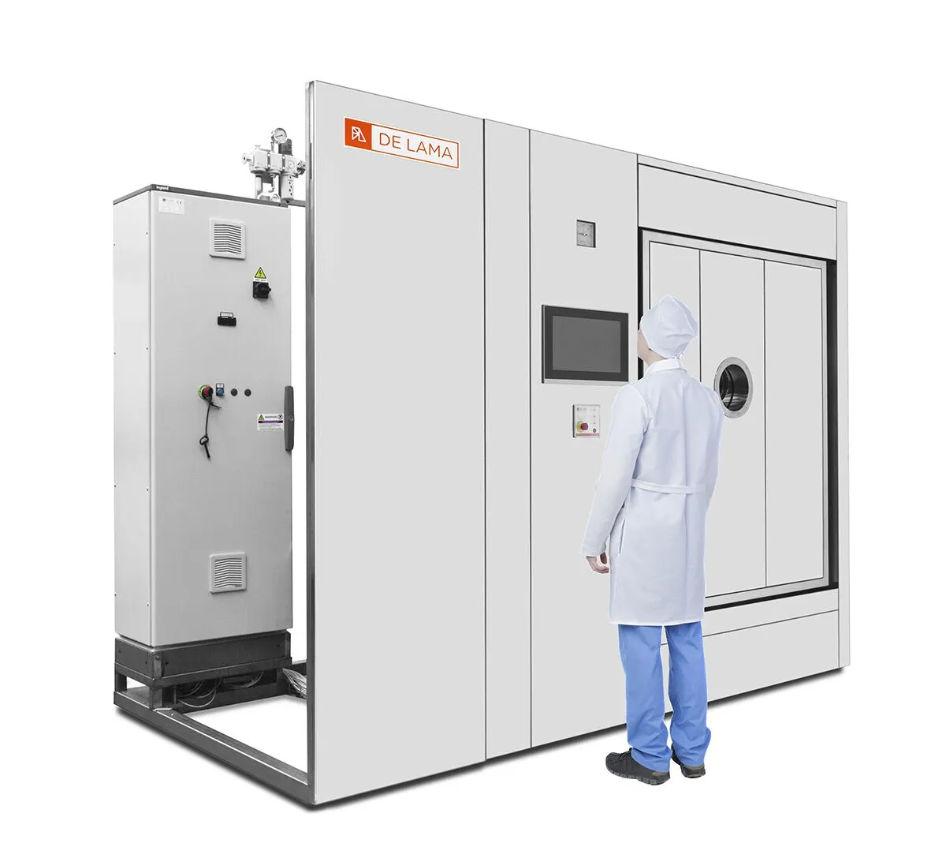 De Lama has developed an innovative process starting from many years of experience in the field of sterilization and decontamination: sterilization and decontamination with hydrogen peroxide under vacuum. The new vacuum hydrogen peroxide decontamination pass-box allows to reach new standards of performance and repeatability for surface decontamination of loads and in particular offers completely new advantages for the sector.